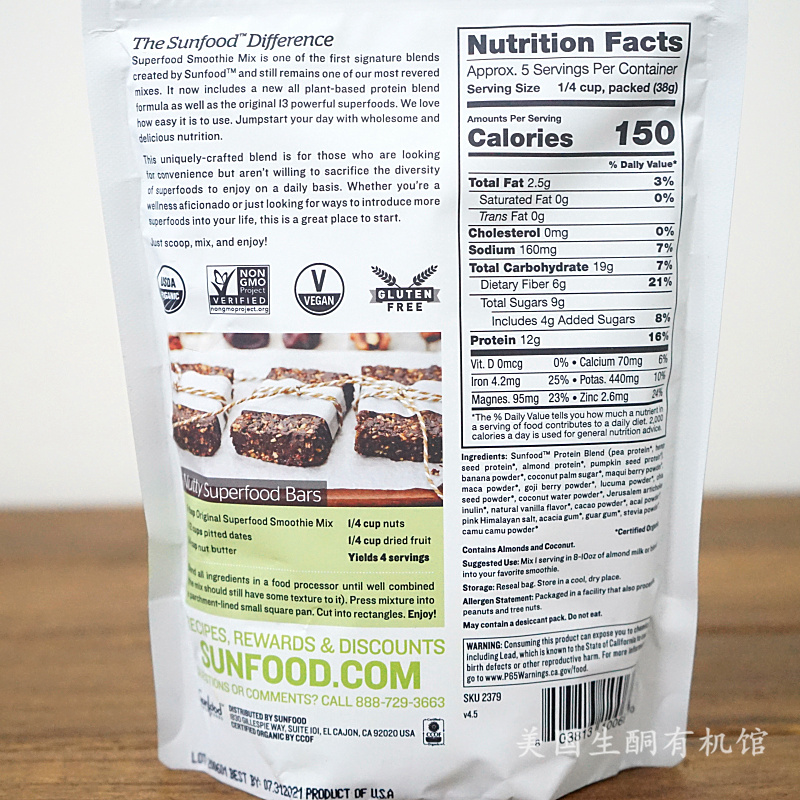 American Sunfood Smoothie Mix mix super food milkshake with Brazilian berry powder 227 g