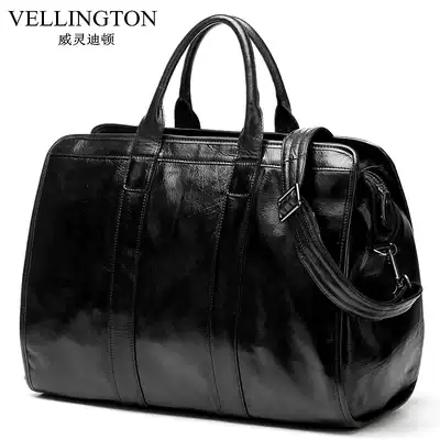 Weiling Deaton High-grade vintage leather men's bag Hand bag large capacity business official document luggage bag travel bag big bag
