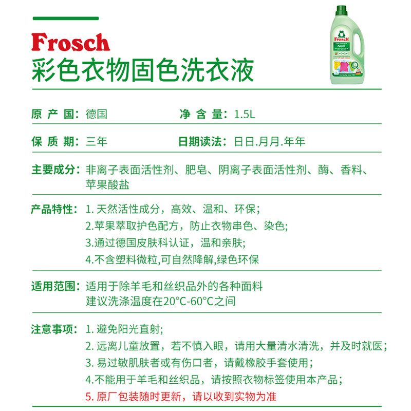 Frosch Germany Imports Home Natural Color Clothes Anti-coloration Color Solid Color Protective laundry detergent 1 5L