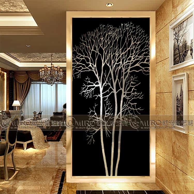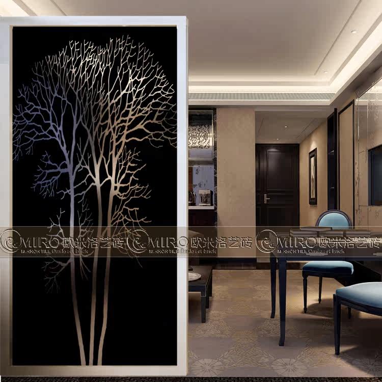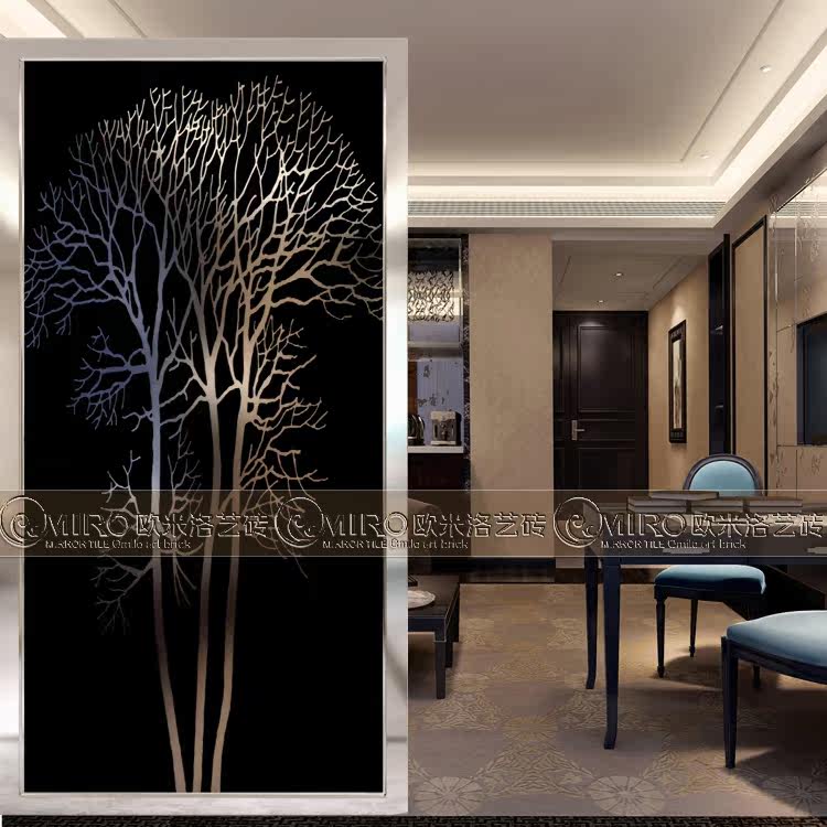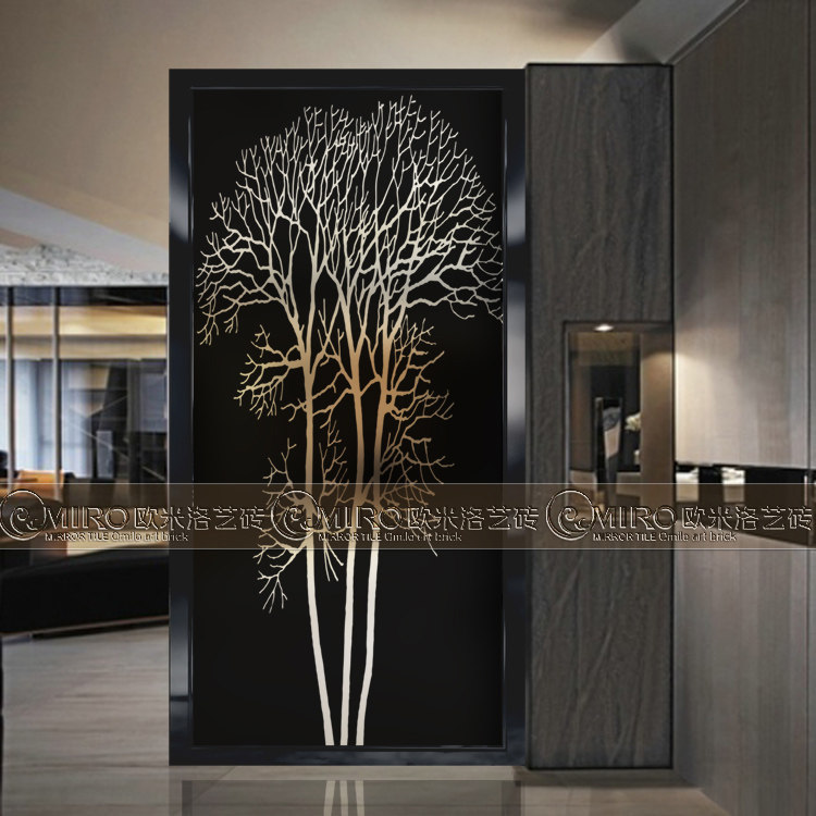 Boutique House Dress With Frame Flat Sand Art Glass Color Painted Bifacial Background Wall Screen Partition Entrance Into The Family Genguan Styling Tree
