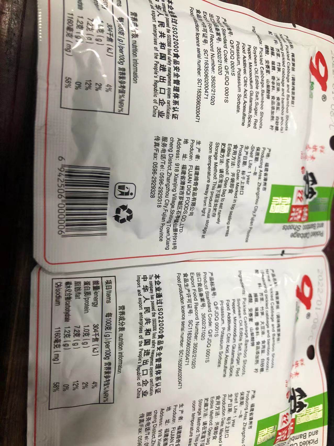 Fujian specialty pickles, shredded bamboo shoots, pickles, pickles, pickles, appetizers, appetizers, pickles 70g