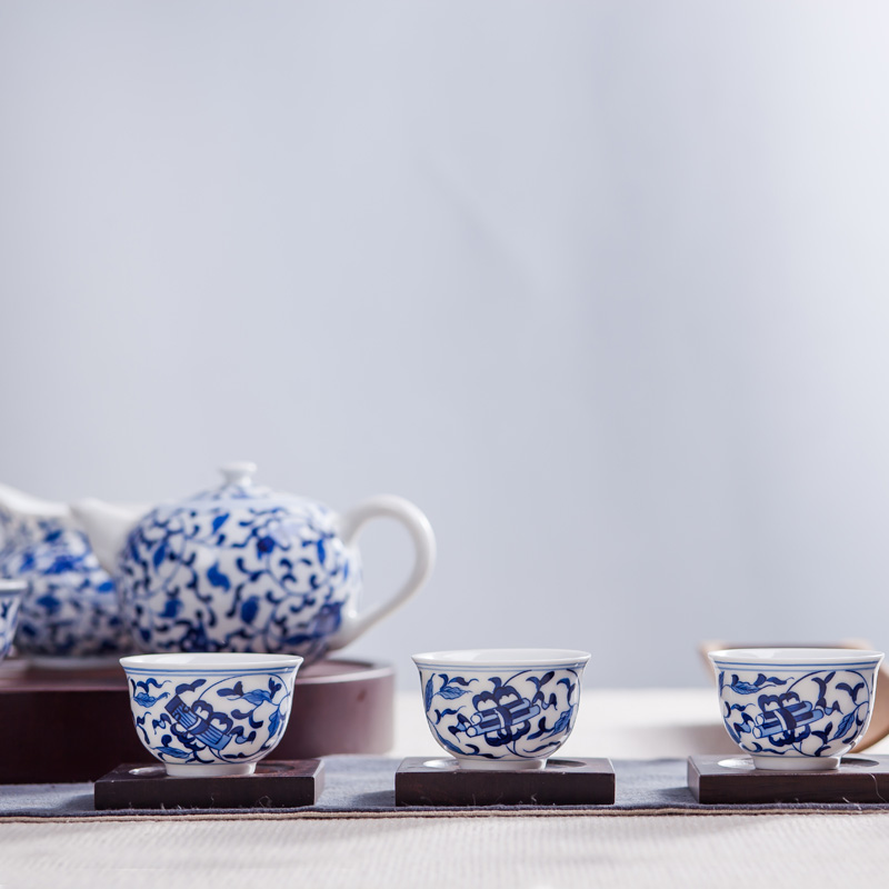 Jingdezhen Ceramic Handmade Gongfu Tea furniture Set home Qinghua Porcelain Tea Cup Teapot Justice Cup Whole of Tea Road