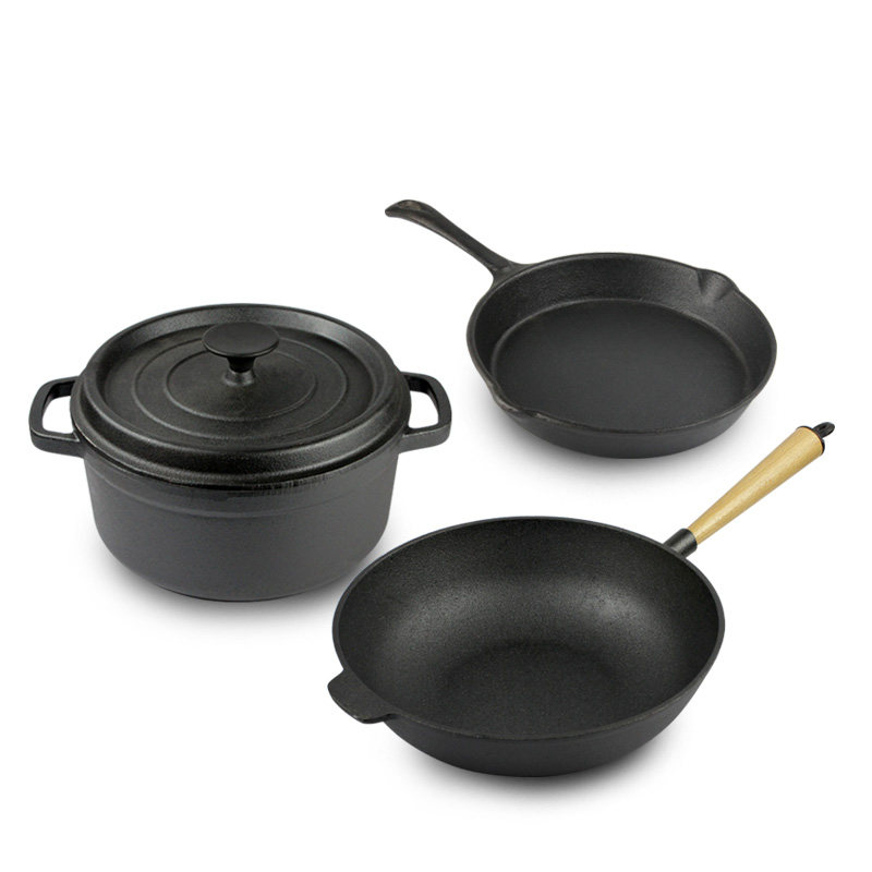 Jinghui uncoated cast iron pot set non-stick frying pan stew pan frying pan combination 3-piece induction cooker pot ceremony