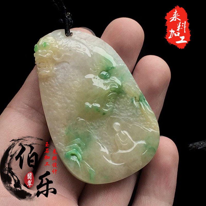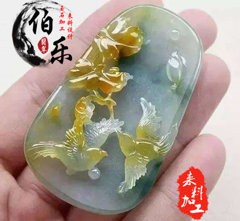 Emerald engraving jade wool material processed raw stone woolen custom brand hand play piece Manau playful engraving design diagram