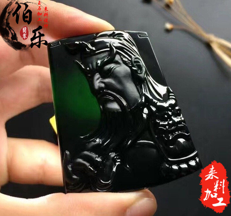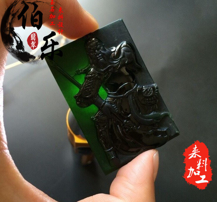 Emerald processing engraving jade processed raw stone wool jade Customized brand Manau amber ink Cuiguan Gongtu