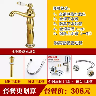 European-style basin faucet All-copper antique European-style hot and cold water faucet Raised single-hole basin faucet Retro faucet