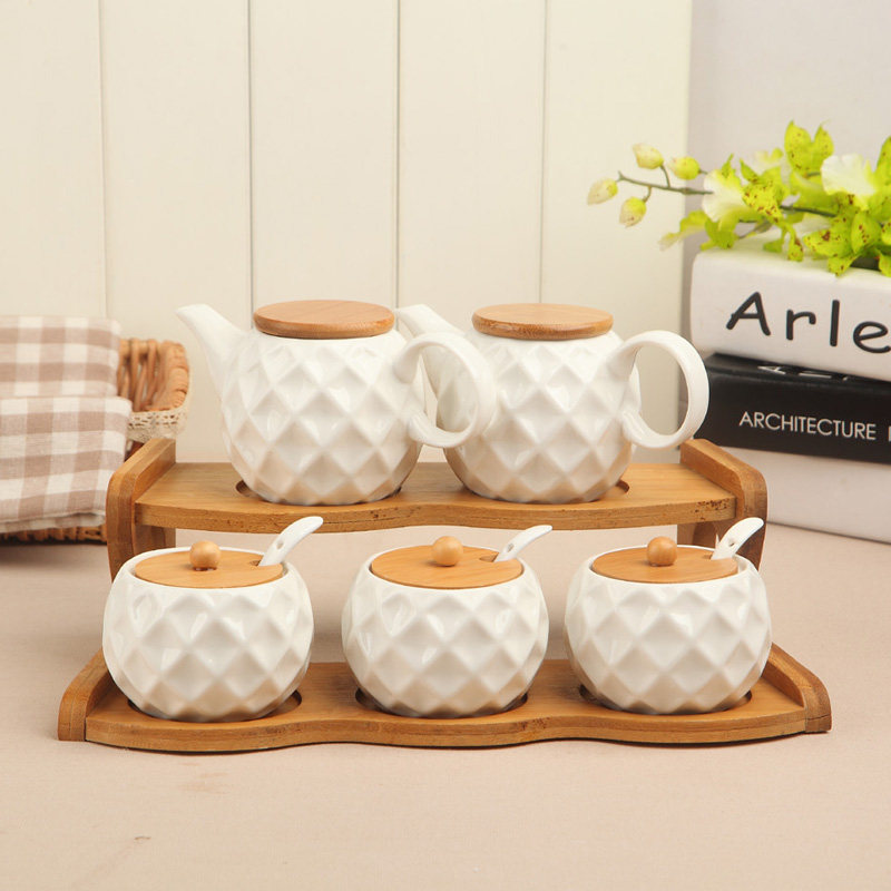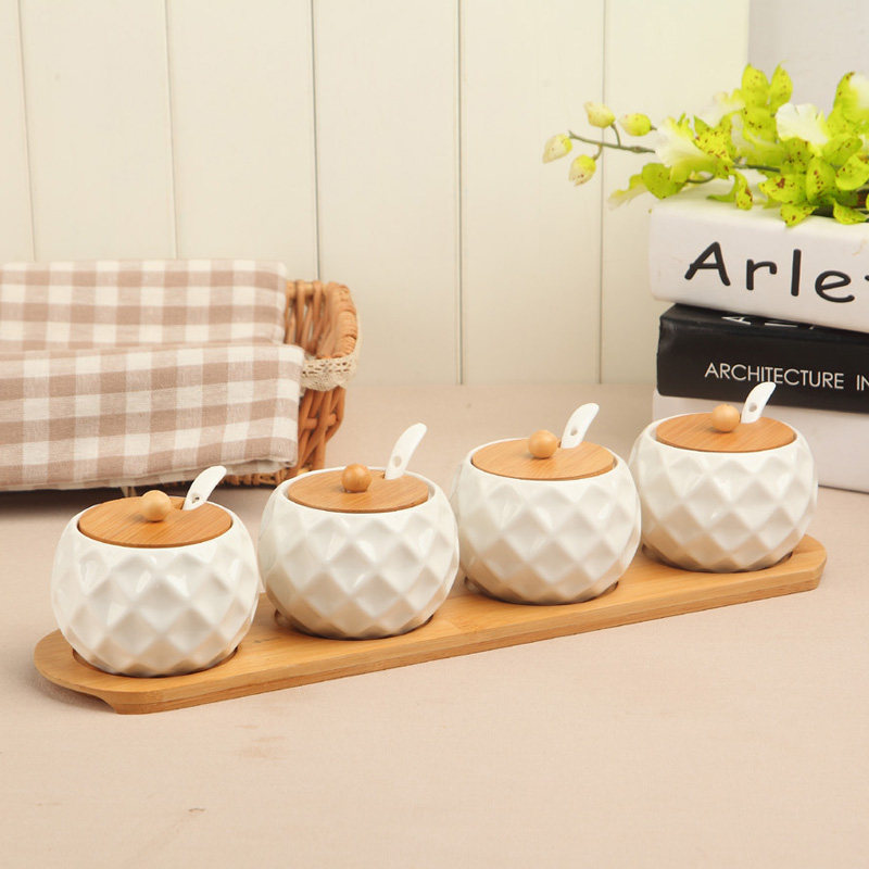 Single tank matching spoon (bamboo cover two-style suit (bamboo cover with four sets of four sets of four jars (bamboo cover double shelf with six pieces of three jars (bamboo cover)