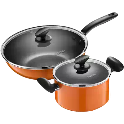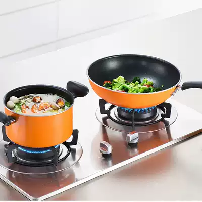 (Spot)Orange 2-piece set for gas] Orange 3-piece set for gas] Red 3-piece set for gas] Orange upgrade 3-piece set for induction cooker Universal] Wok soup pot frying pan