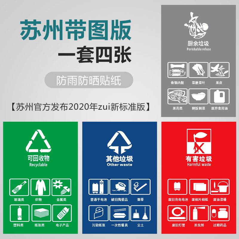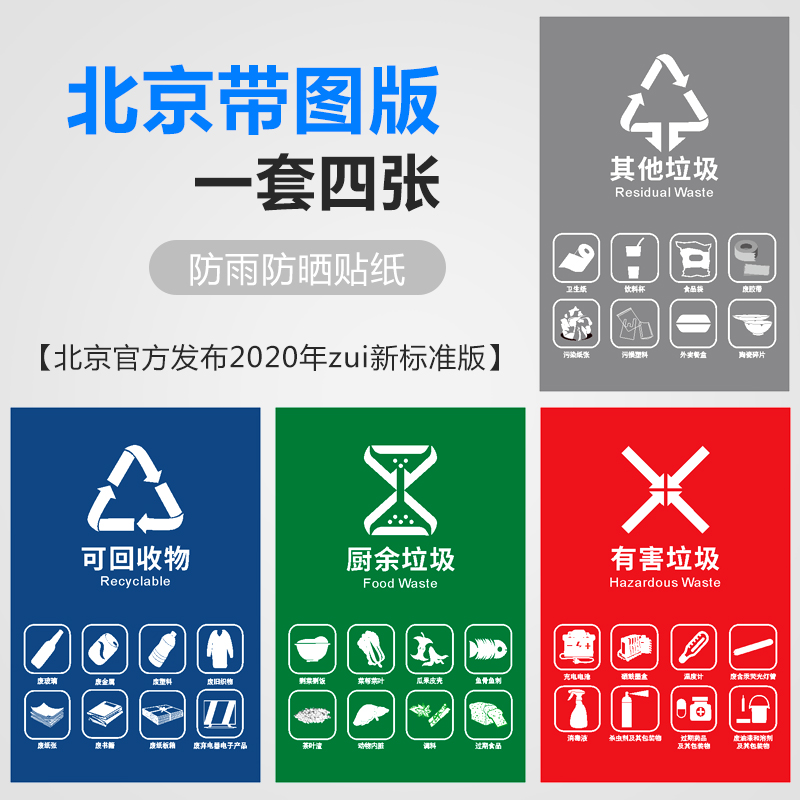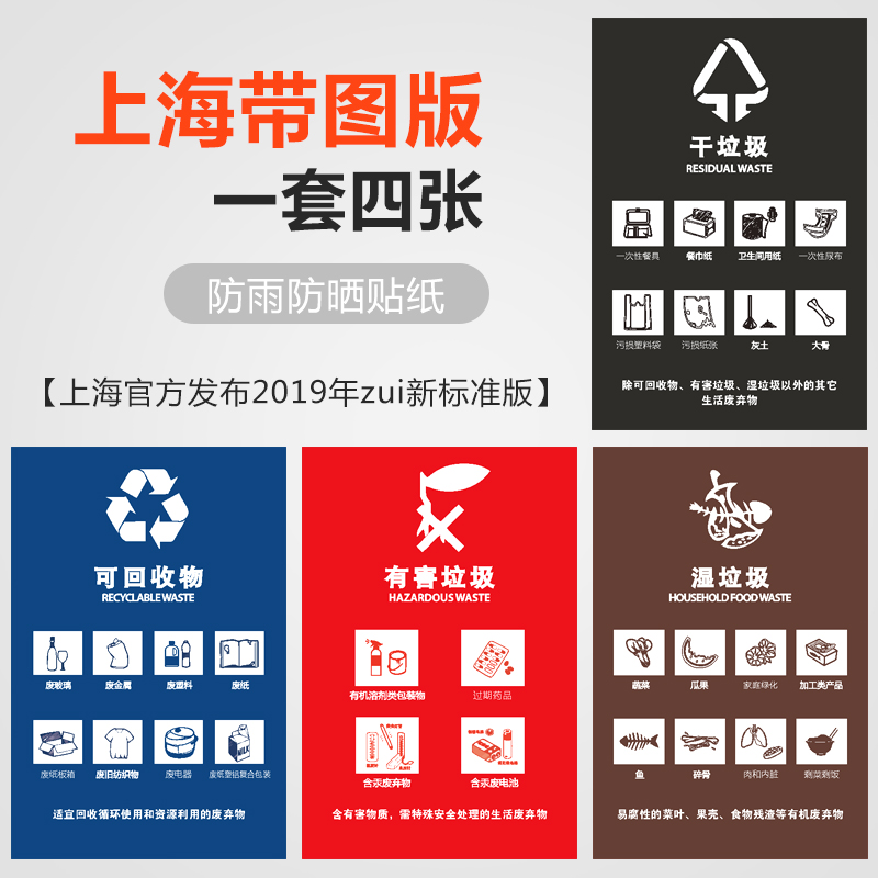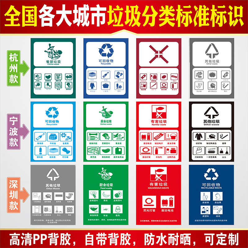 Garbage Sorting Logo Stickers Trash Cans Logo Stickers Recyclable Harmful Kitchen Waste Other Trash Mark Jinan Beijing Shanghai Hangzhou Shenzhen Suzhou Garbage Classification Advocacy Slogan Wall Stickers