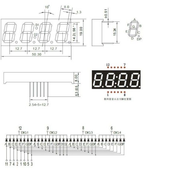 0 56 inch 4-bit LED Digital Tube Four-bit red with clock point 5643AH BH 5643AS BS