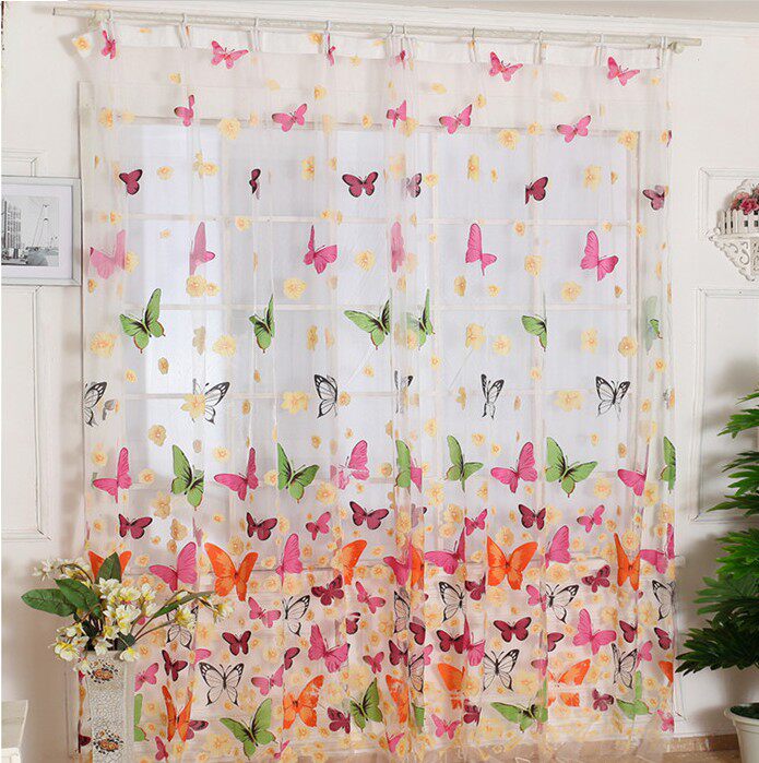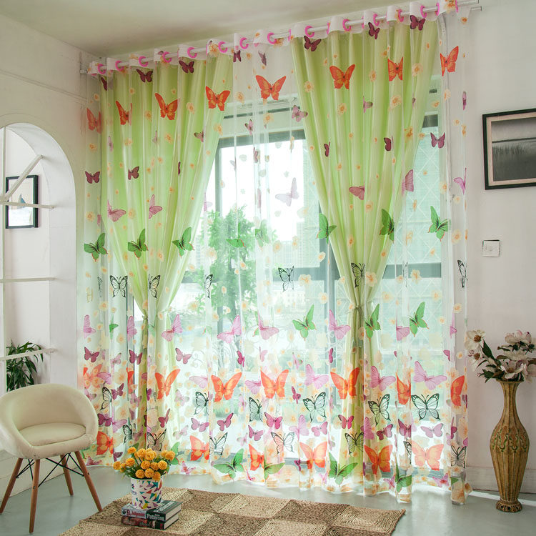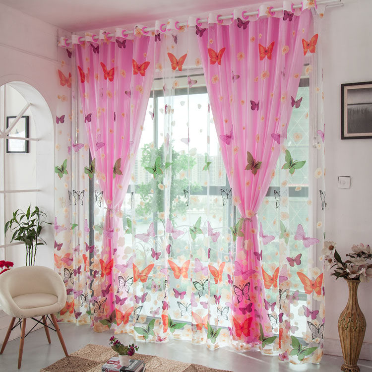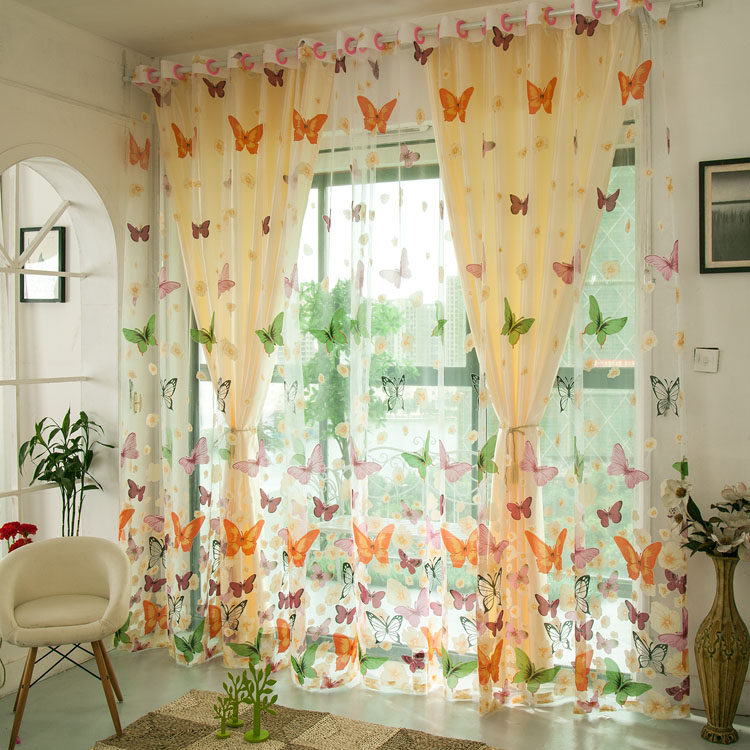 Beautiful pastoral gauze semi-shading rotten flower curtain colorful butterfly bedroom living room gauze curtain yarn wholesale