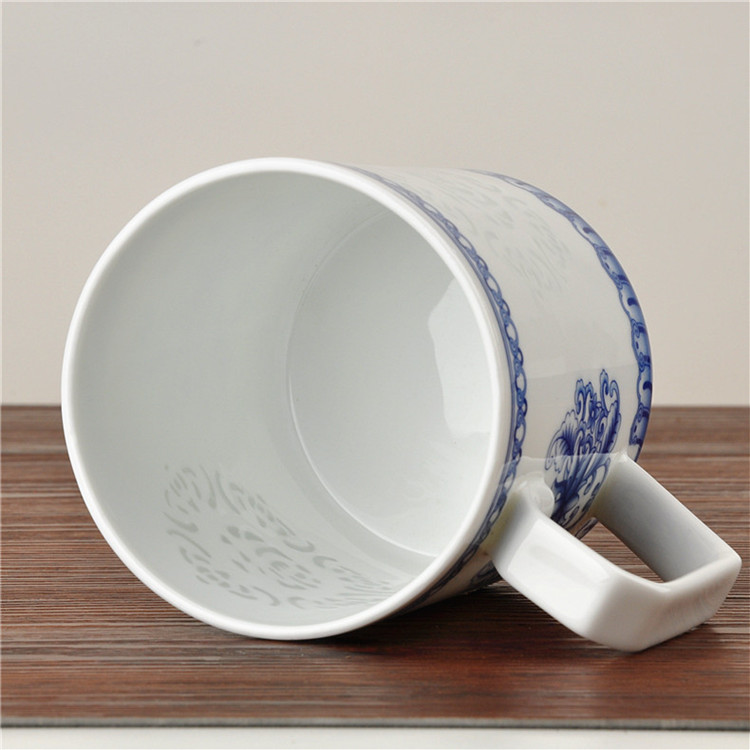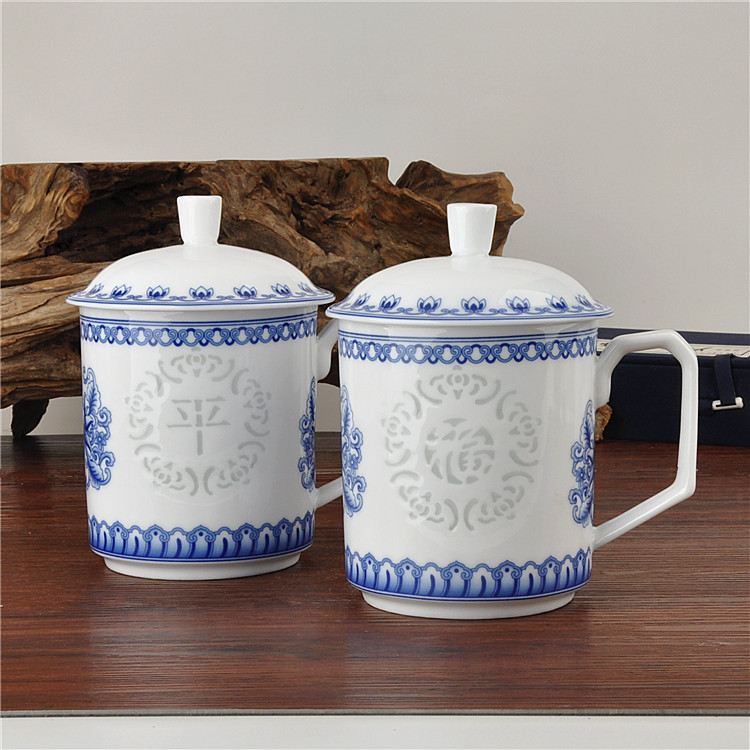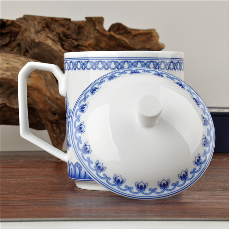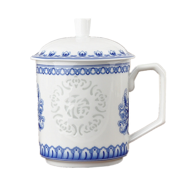 Jingdezhen Ceramic Cup Blue Flower Linglong Tea Cup Bone Cup with cover boss 500ML