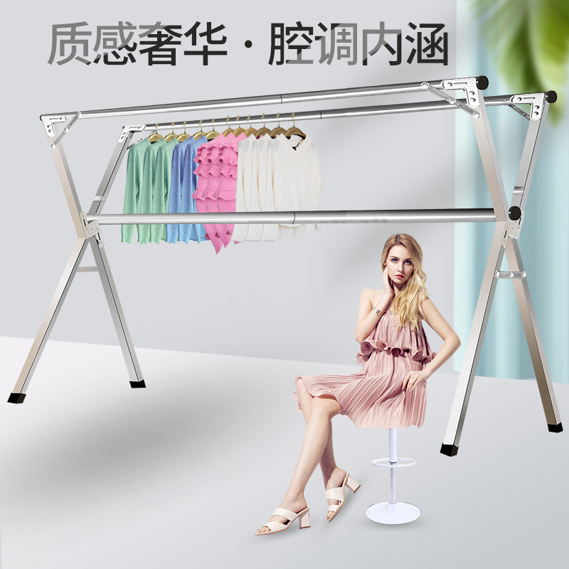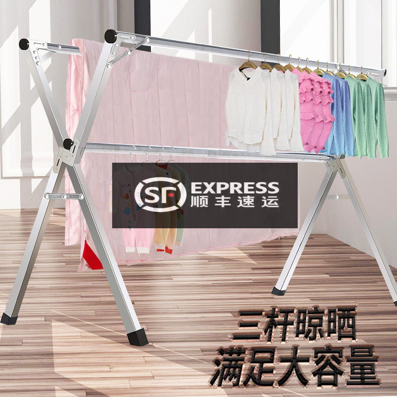 Stainless steel drying rack Floor folding indoor household balcony dormitory telescopic double rod drying rod drying artifact