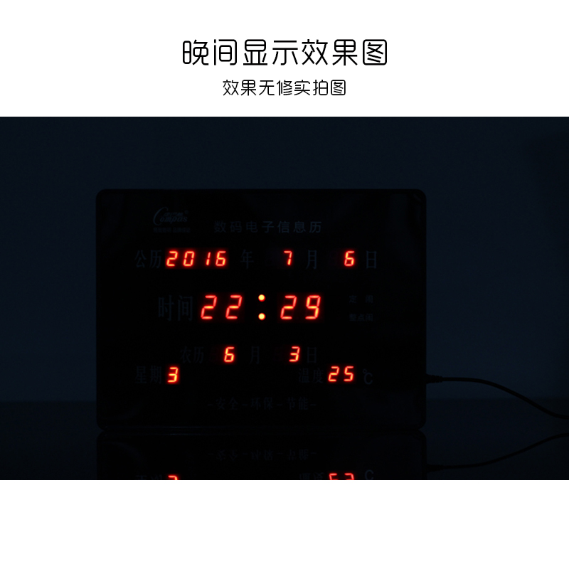 Kangba Silk LED digital perpetual calendar electronic clock Wall clock Living room creative mute electronic clock calendar clock Luminous
