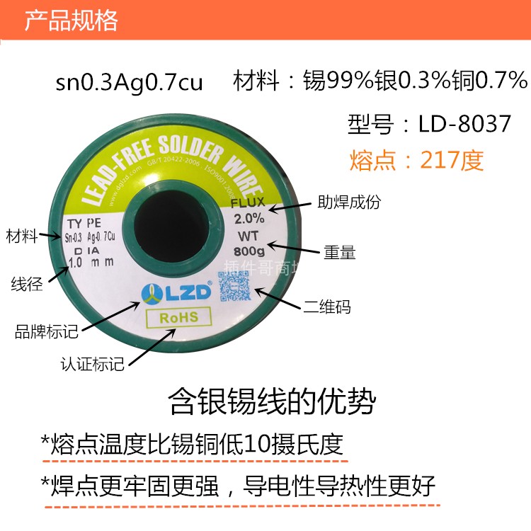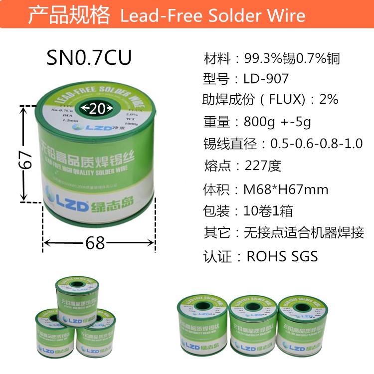 Green Island LZD lead-free environmental protection ROHS silver-containing rosin free cleaning 1 0 tin wire 0 6 solder wire 0 8