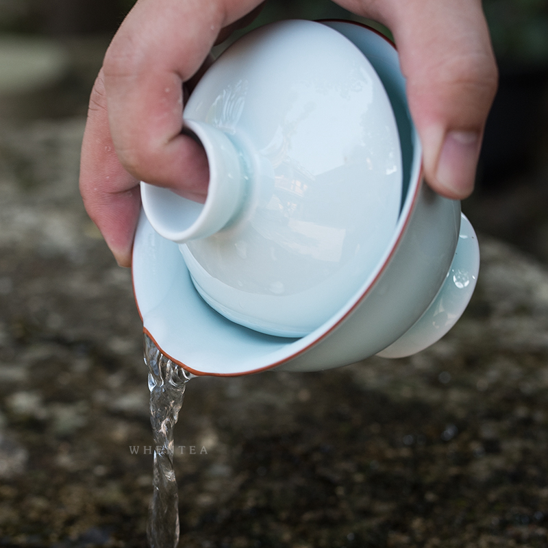Wen said) Yingqing Gaiwan Large Tea Bowl Thin Body Celadon Ceramic Color Glaze Kung Fu Tea Maker