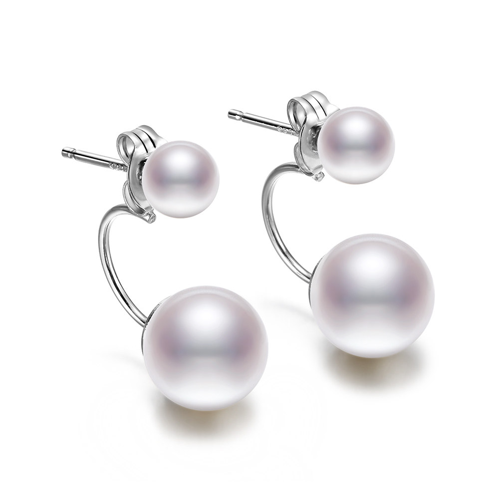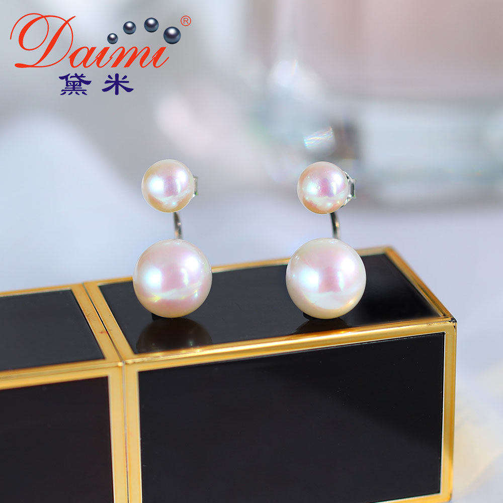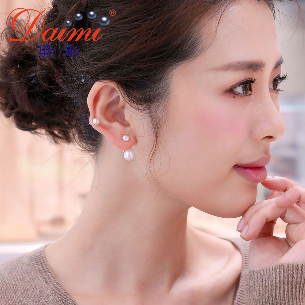 Demi jewelry simple heart 8-9mm bright white freshwater pearl studs S925 silver earrings earrings femininity