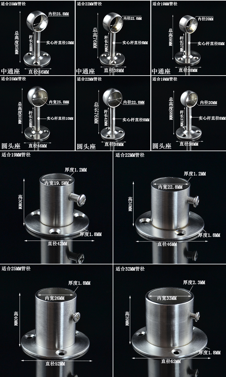 Stainless steel Stainless Steel Care Wardrobe Hung up round head Round Clothes Rod Towel Rod seat flange Seat Window Curtain Rod holder Pendant Pendant