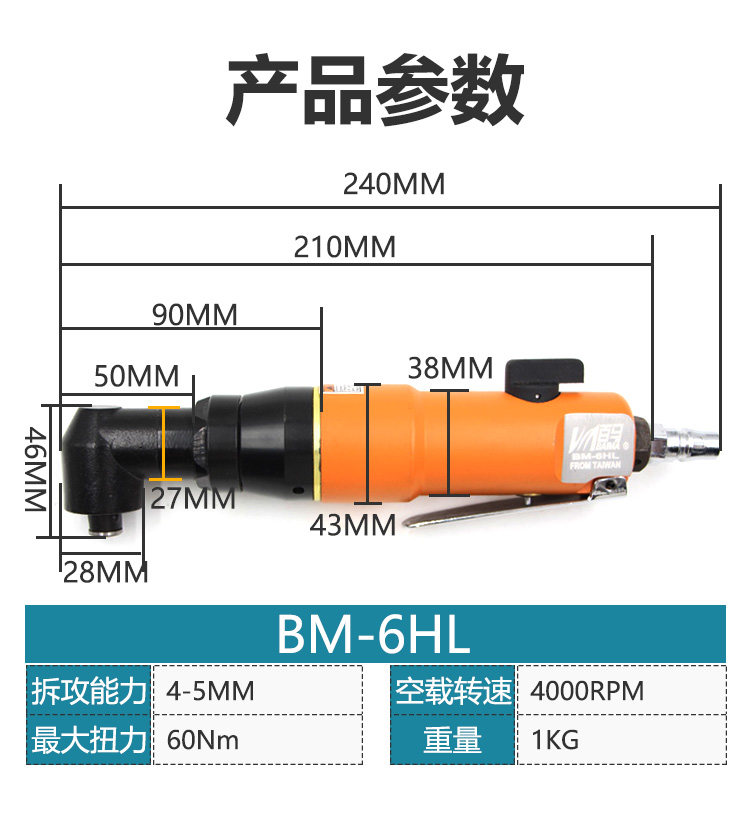 BMMA 6HL 8HL industrial grade L elbow wind batch 90 degree right angle pneumatic screwdriver corner wind batch is selected
