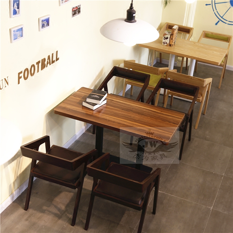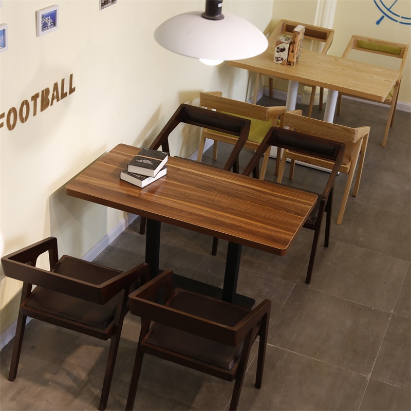 Nordic small apartment solid wood dining table and chair combination Modern simple coffee dining room rectangular Wrought iron retro dining table
