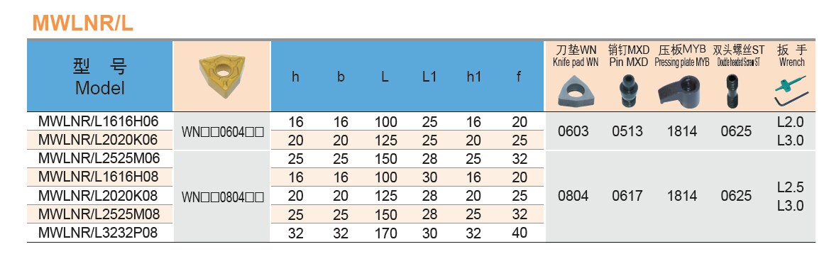 MWLNR1616H08 Forward Knife MWLNL1616H08 Reverse Knife MWLNR2020K08 Forward Knife MWLNL2020K08 Reverse Knife MWLN