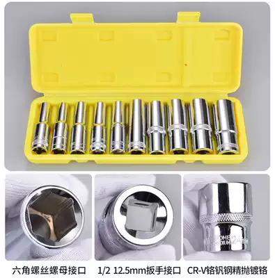 Dafei 1 2 Chrome vanadium steel mirror outer hexagonal 6-angle extended sleeve head Fast ratchet wrench set head 12 5mm