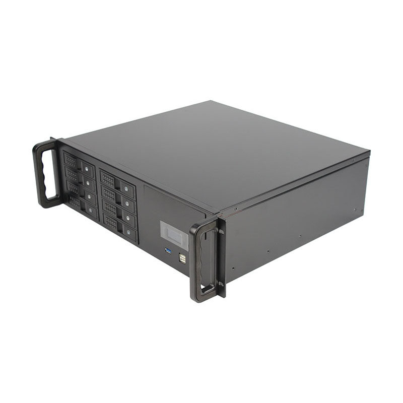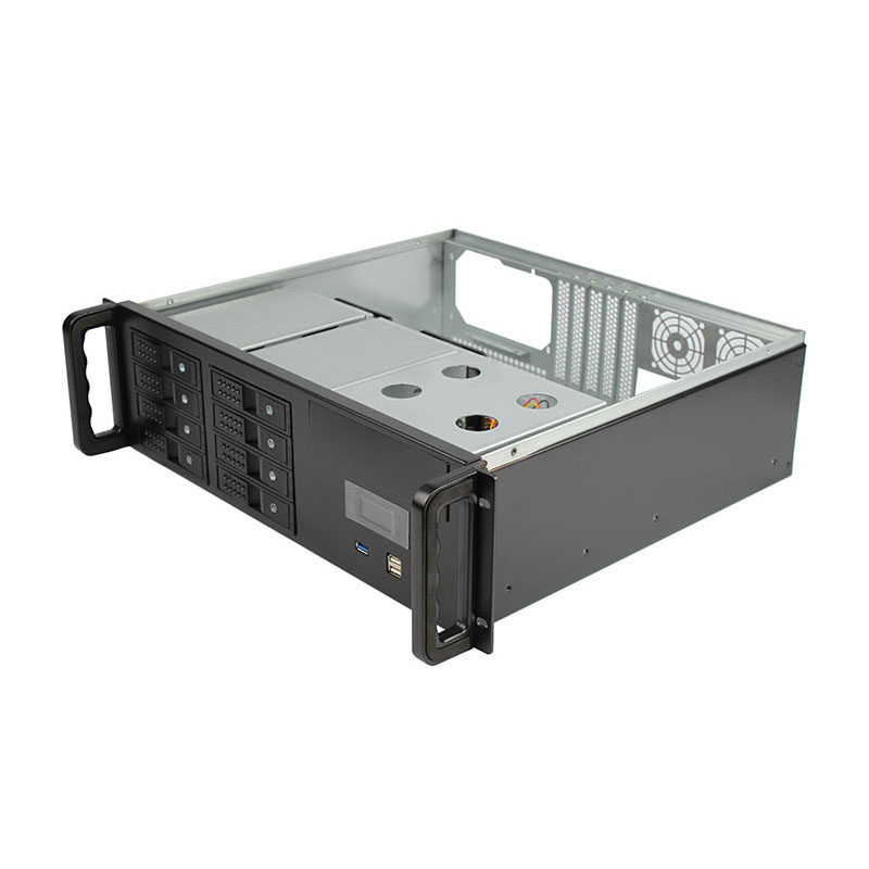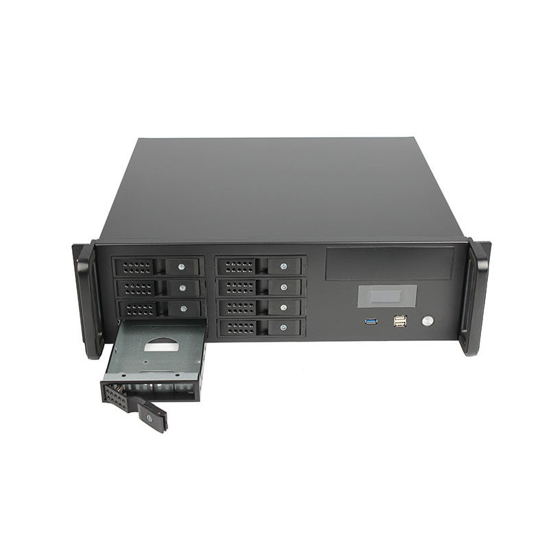 3u Host shell Hot Swap 8 Hard disc bits aluminium panels with temperature-controlled screen 390MM DEEP ATX POWER SUPPLY 5 TROUGH HOST SHELL CLEAR BIN