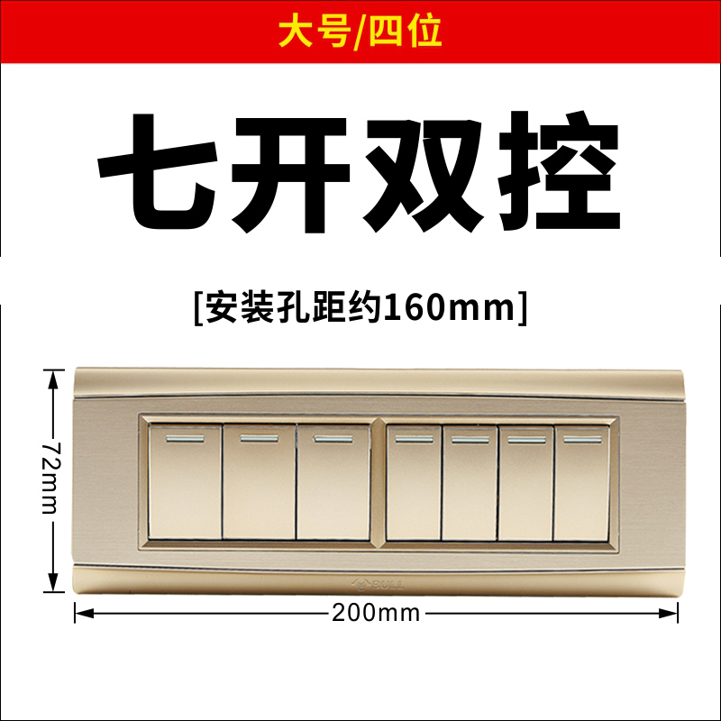 Bull Switch Socket 118 Type Four 7 open Double-linked wall Power Switch Panel Seven open double cut Home Gold