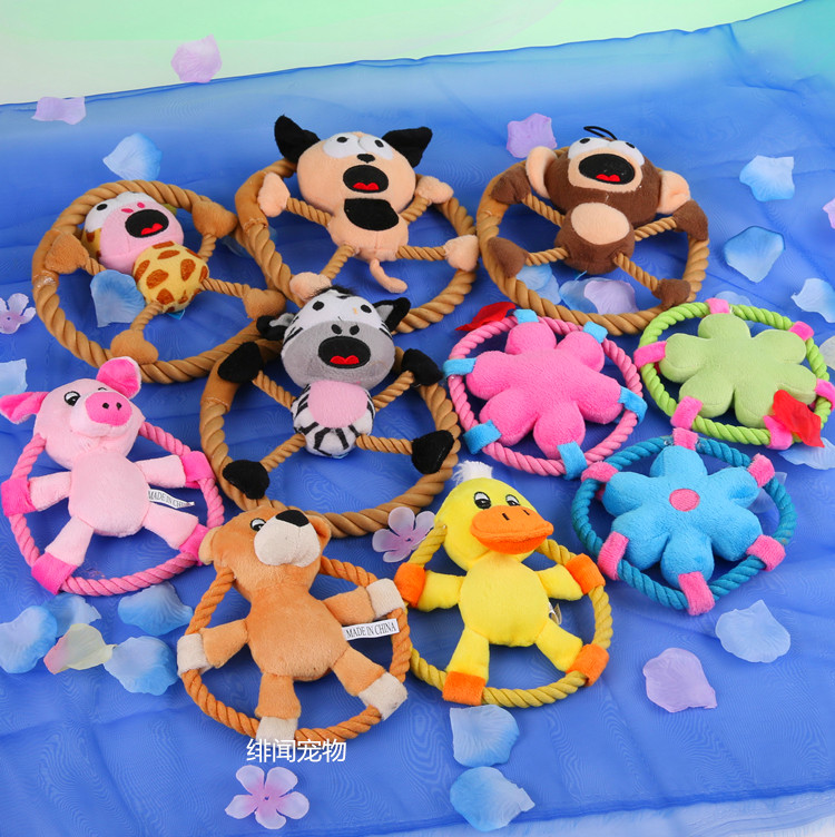 Pure foreign trade tail list gossip pet frisbee knot plush toy with BB pet cat dog toy