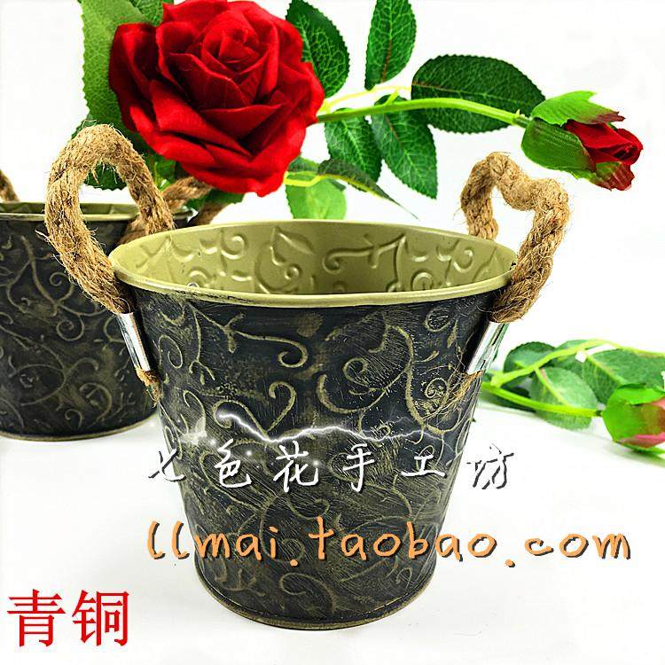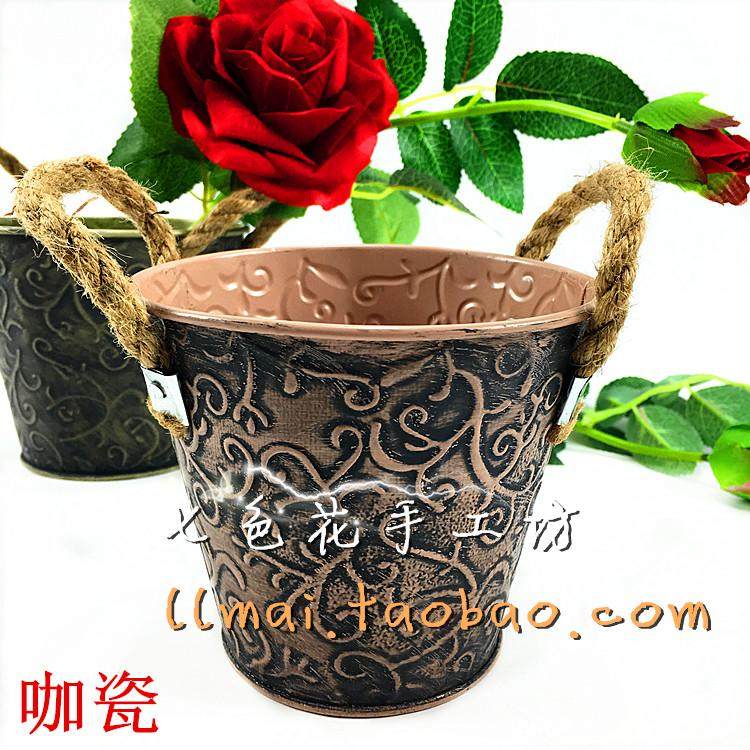 Iron Art Floral Creativity Home Modern Fashion Small Flower Casks For Old Retro Living Room Tin American Imitation Porcelain Iron Vase