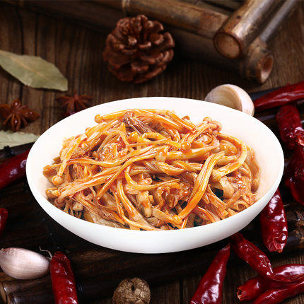 Hunan specialty spicy golden mushroom 20g spicy snacks snacks Vacuum small package meals under red oil