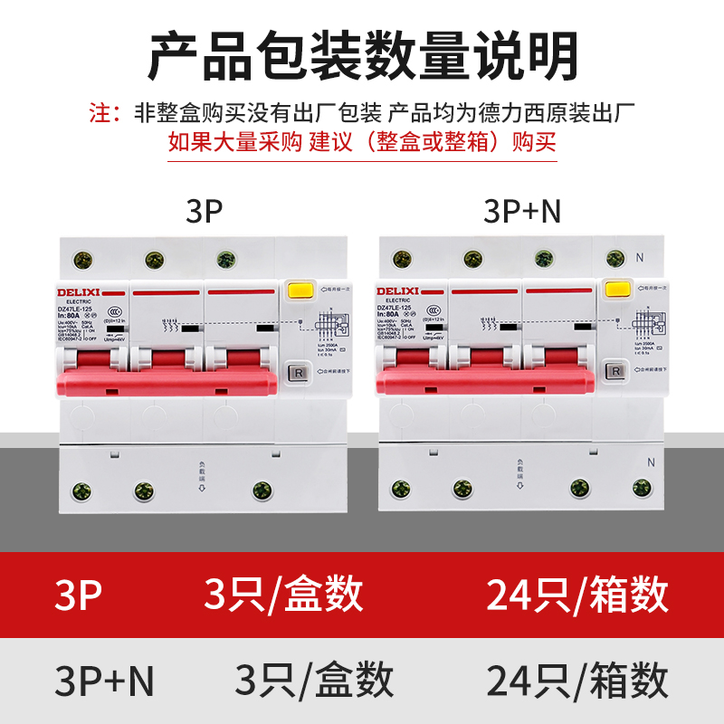 Delixi air switch leakage circuit breaker DZ47LE-125 3P N 100A three-phase four-wire open 125A