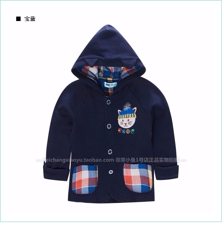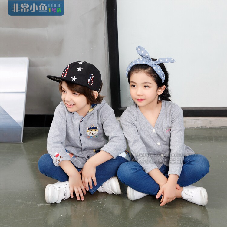 Very Small Fish 26570 Boys Spring and Autumn Knitted Cotton Cardigan Casual Hooded Fashion Handsome Jacket Tops