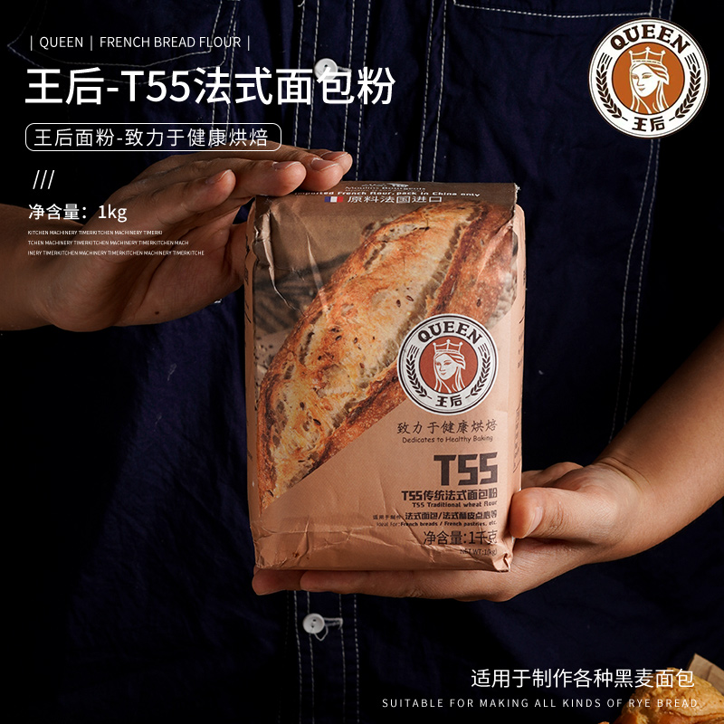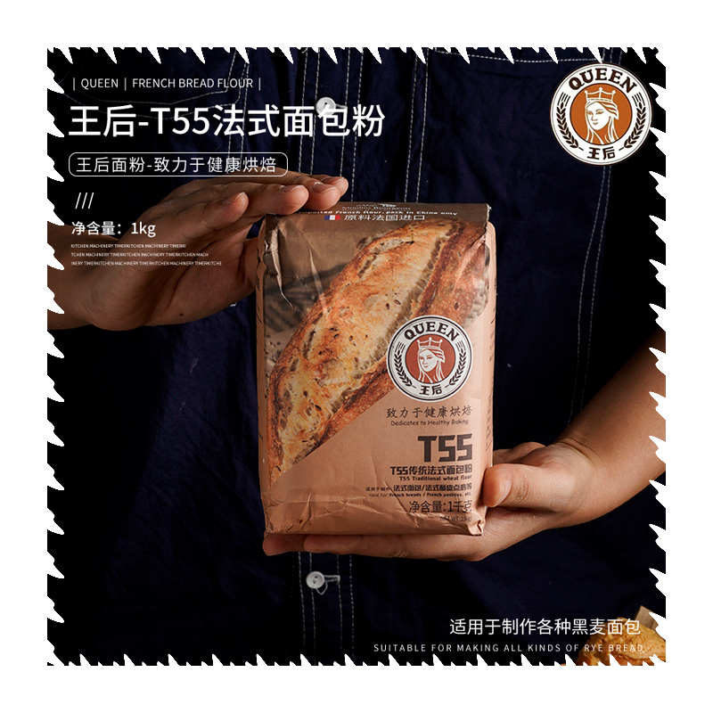 Queen T55 Traditional French style bread powder 1KG Queen soft white low gluten powder 1kg (spot) Queen's Day toast Pink 1kg Queen hard red High-gluten powder 1Kg (spot) Queen T170 full