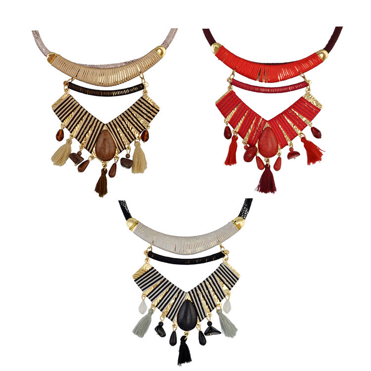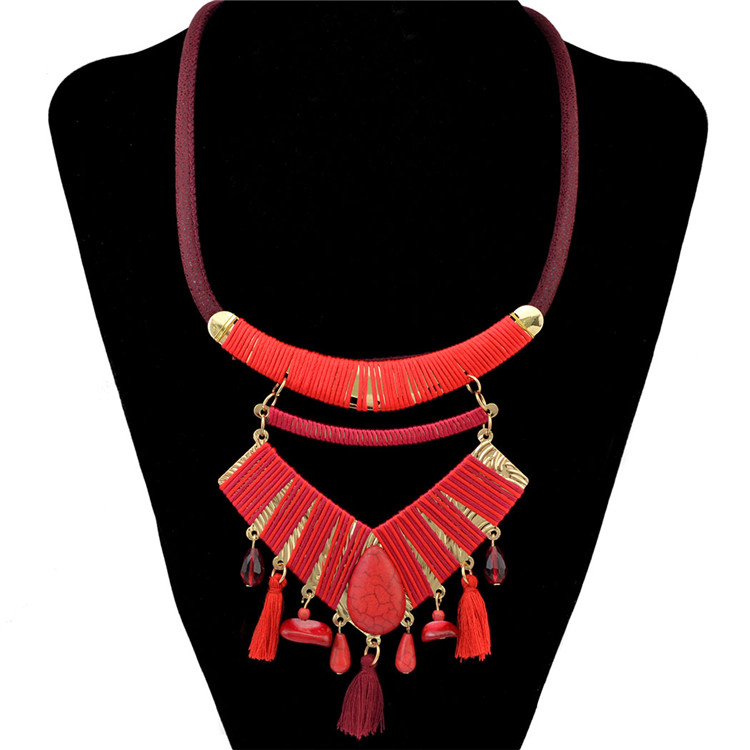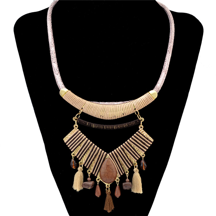 Bohemian retro wind hand-knitting stream necklace with European and American fashion pine neck chain jewelry