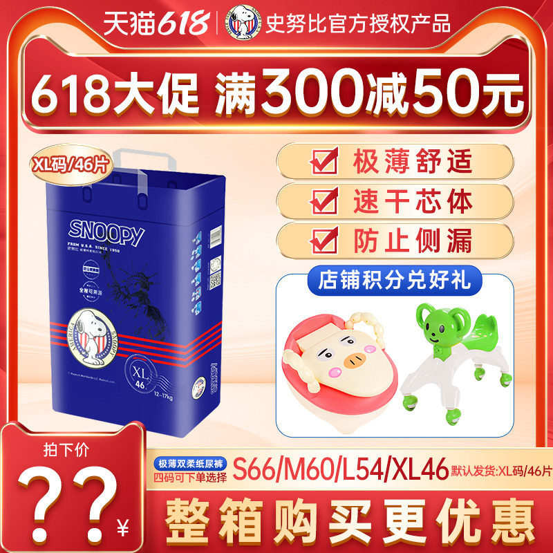 snoopy Snoopy Snothin paper diaper XL code urine not wet dry and extremely thin Teach style 46 sheet male and female universal 02