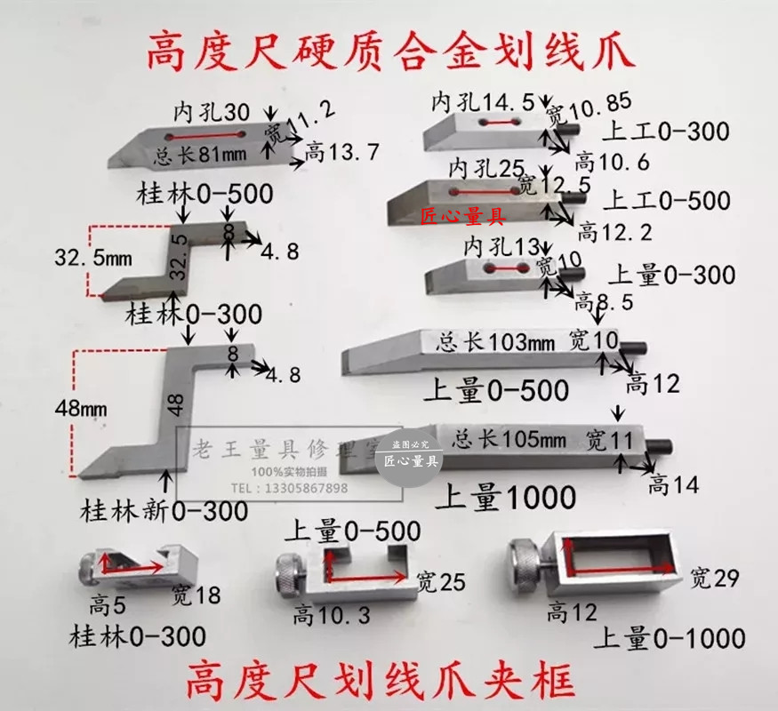 Height ruler scribing claw Cemented carbide scribing head 0-200-300-500-1000 Measuring tool accessories