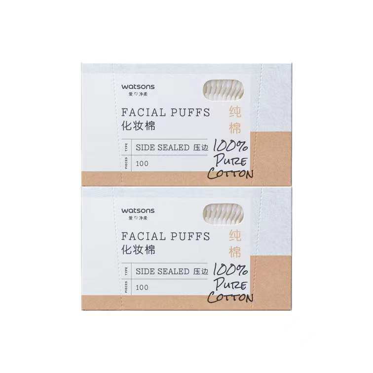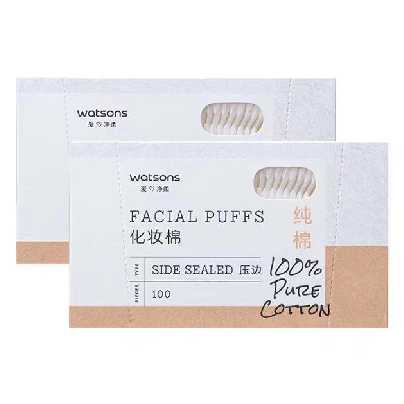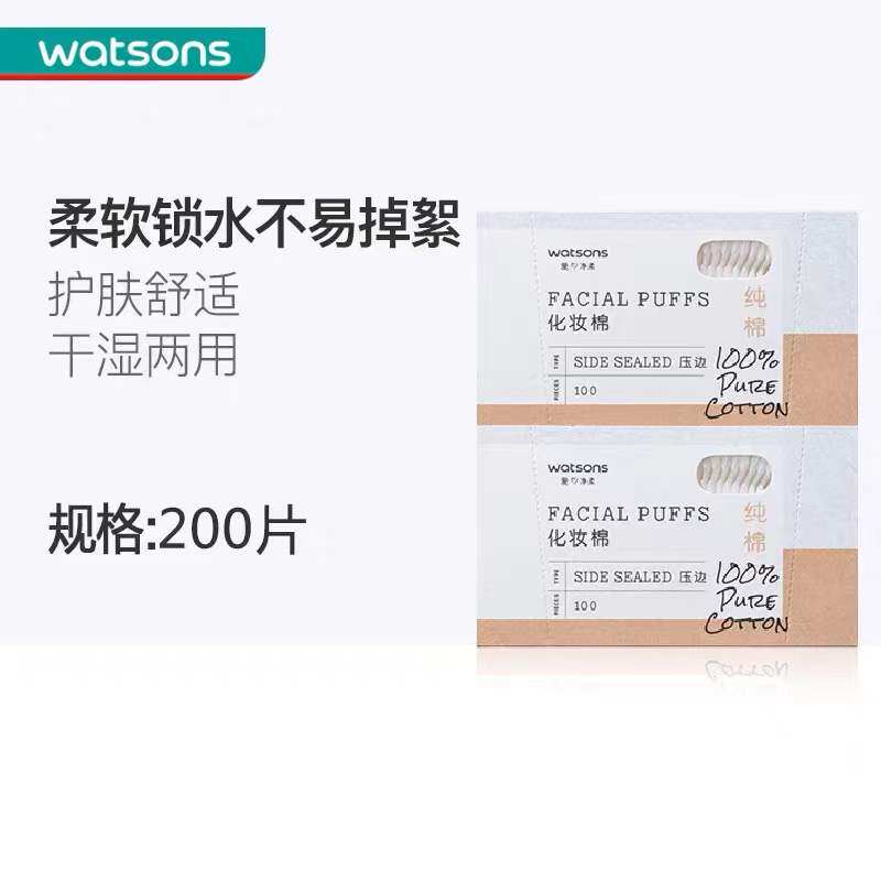 Watsons pressed edge cosmetic cotton 100 pieces * 2 box thick double-sided wet compress face makeup remover cotton box 200 pieces of pure cotton