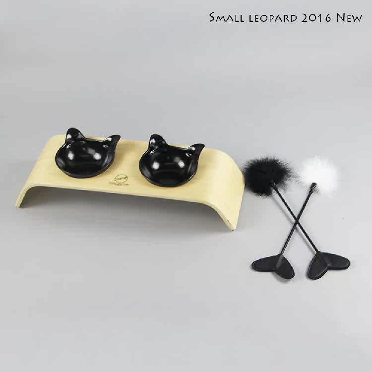 Small wild leopard cat bowl rack cat table cat food bowl dog bowl rack ceramic double bowl food bowl pet bowl supplies