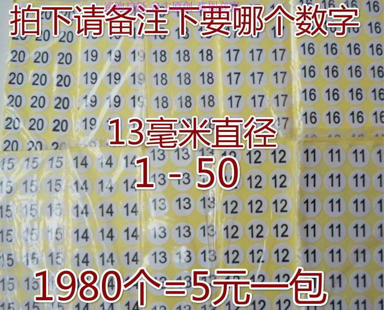 Digital serial number code 1-50 clothes code number shoe code digital number sticker 13MM white sticker