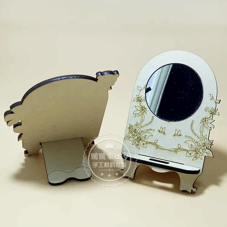 Handmade DIY Wooden Mobile Phone Steps Pearl Snow Flower Clay Color Wooden Mirror Mobile Phone Seat Frame