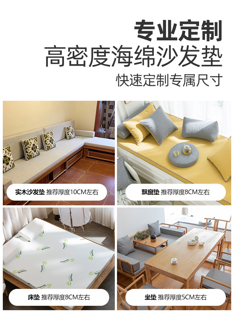 Sponge cushion cushion chair bay window cushion mahogany 50D high-density hard sofa cushion thickened stool heightened custom