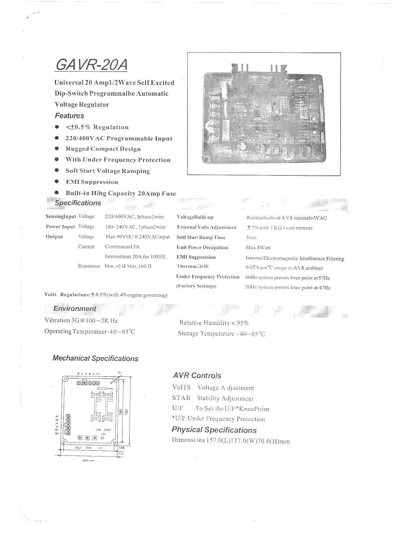 GAVR-20A Voltage Regulator AVR Brushless Generator GAVR-20A Stabilizer Automatic Voltage Regulator