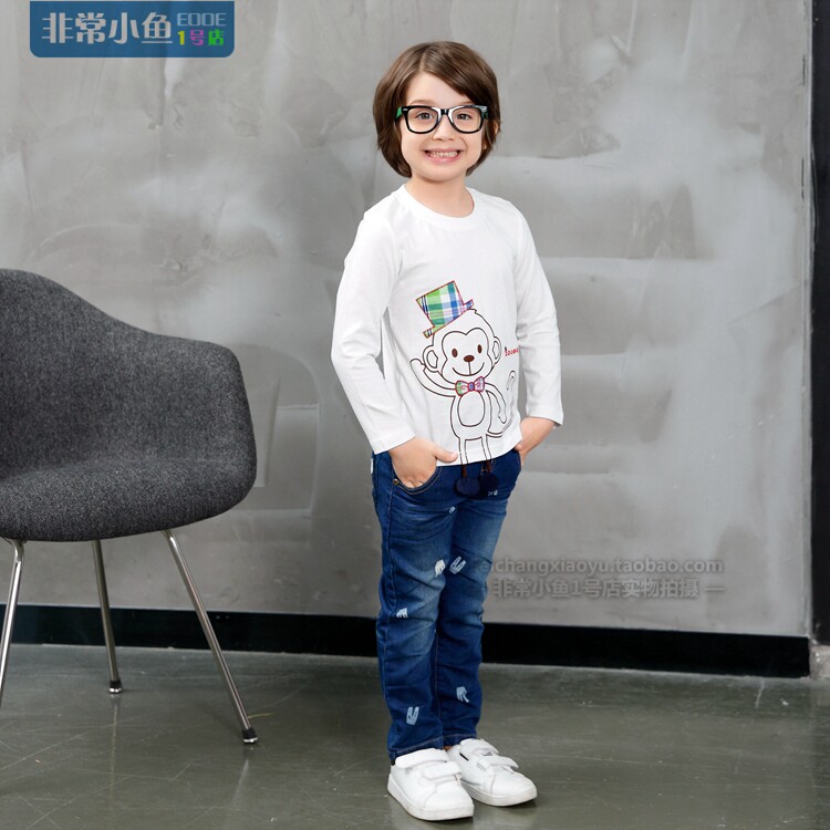 Very small fish 26573 boys spring and autumn clothes cartoon baby round neck casual cotton thin soft long-sleeved top