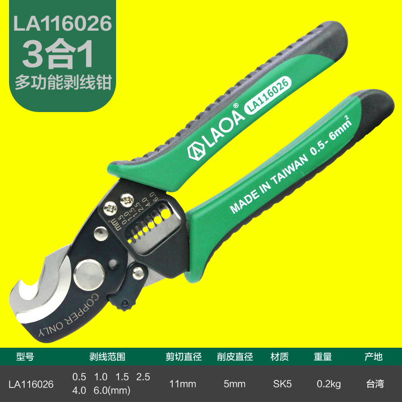 Old A Taiwan-made 3-in-1 multi-function cable stripper, cable cutter, electrician's knife, leather pliers, LA116026