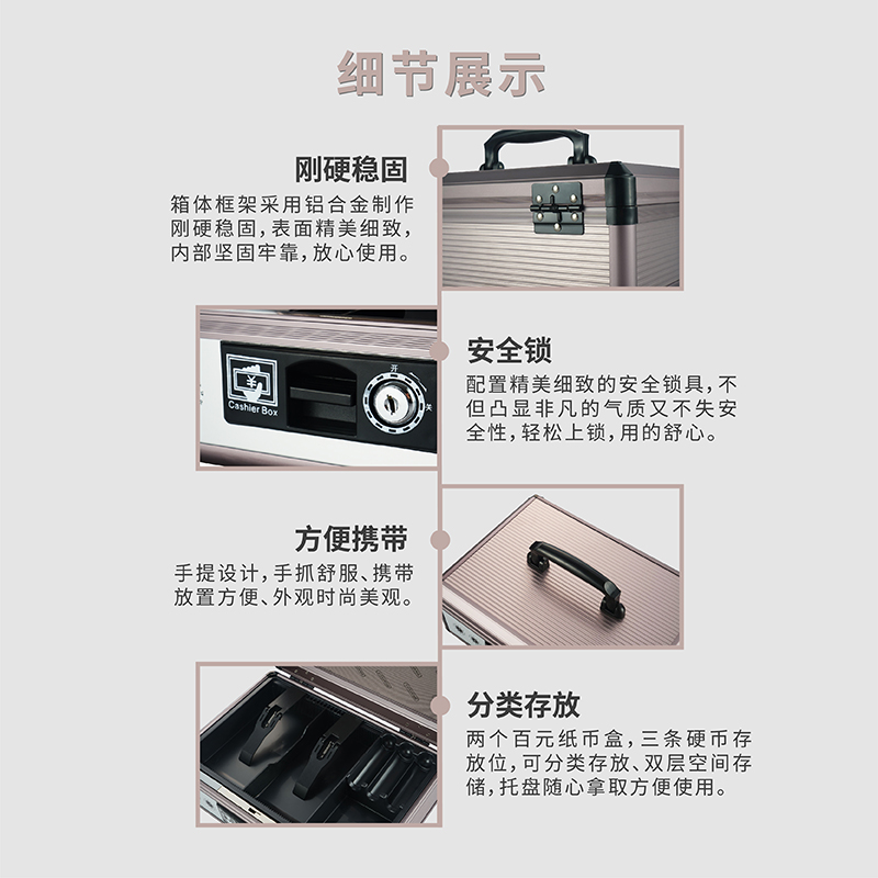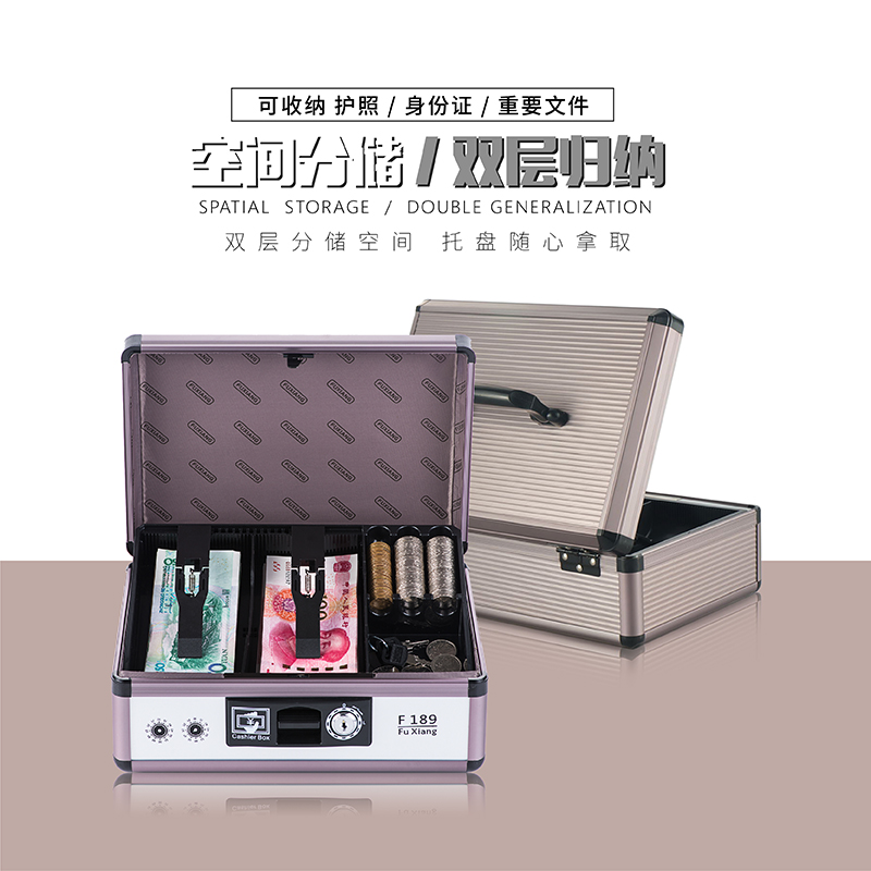 Fuxiang Aluminum Alloy Cash Box Collection Silver Case Commercial Belt Lock Supermarket Cash Box Pendulum stall Cashbox Carry-on-double password-Taobao