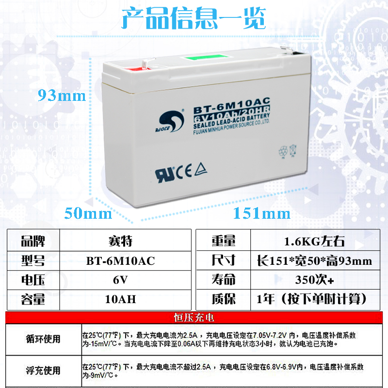 Taiwan set BT-6M10AC battery 6V10Ah children electric car baby carriage large capacity battery battery