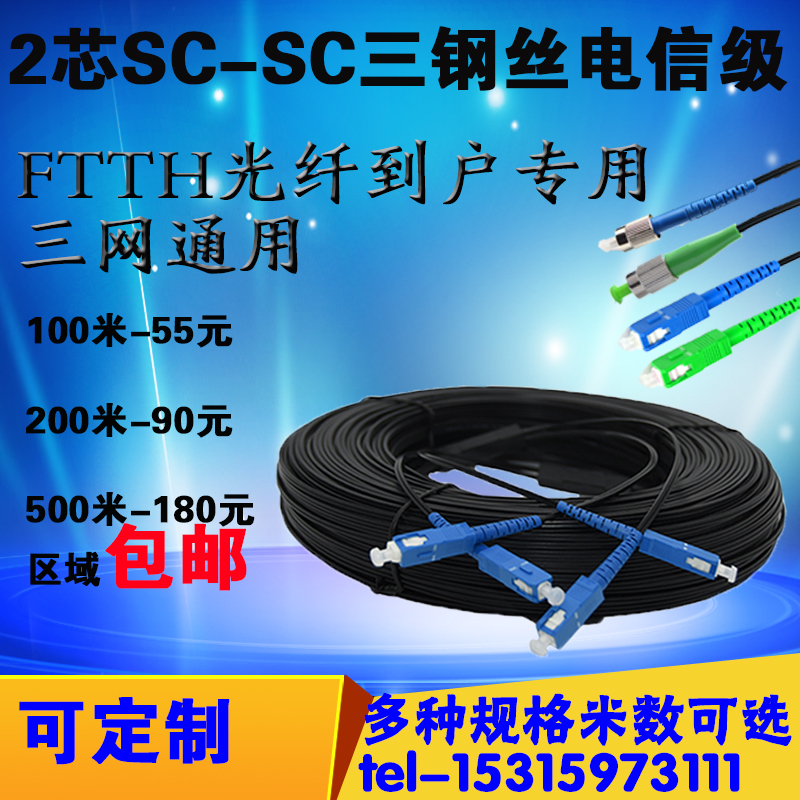 Outdoor fiber optic line 2-core 4-head SC double-core leather line optical brazing line Single-mode leather line Fiber optic cable Fiber optic line jumper