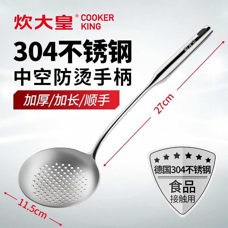 Cooking Grand Emperor thickening 304 stainless steel leaking spoon Home small assistant food-grade thermal insulation anti-scalding handle thickened leak spoon