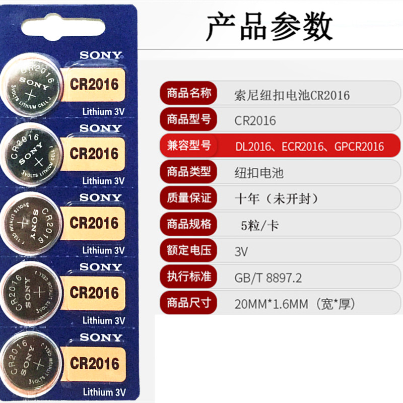 SONY Sony CR2016 button BATTERY 3V IRON GENERAL Alarm Five Rhombus Mid-Control Lock Battery
